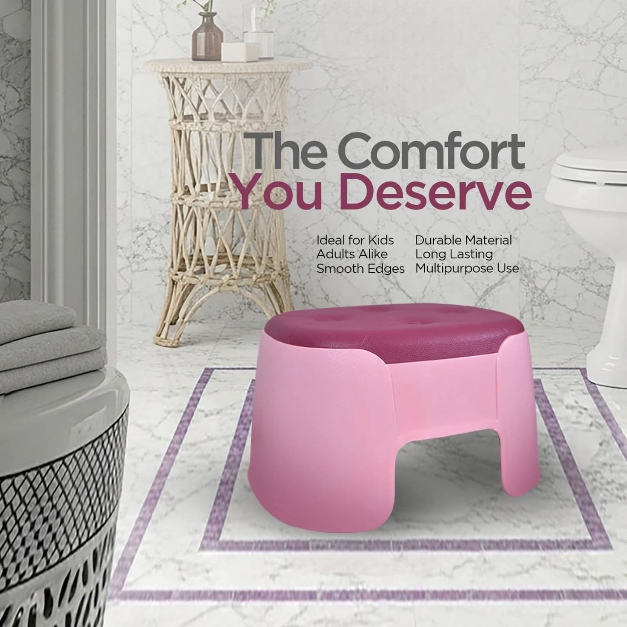 Upgrade your bathroom experience with our comfortable and practical  bathroom stool. Order now and enjoy the comfort you deserve!”